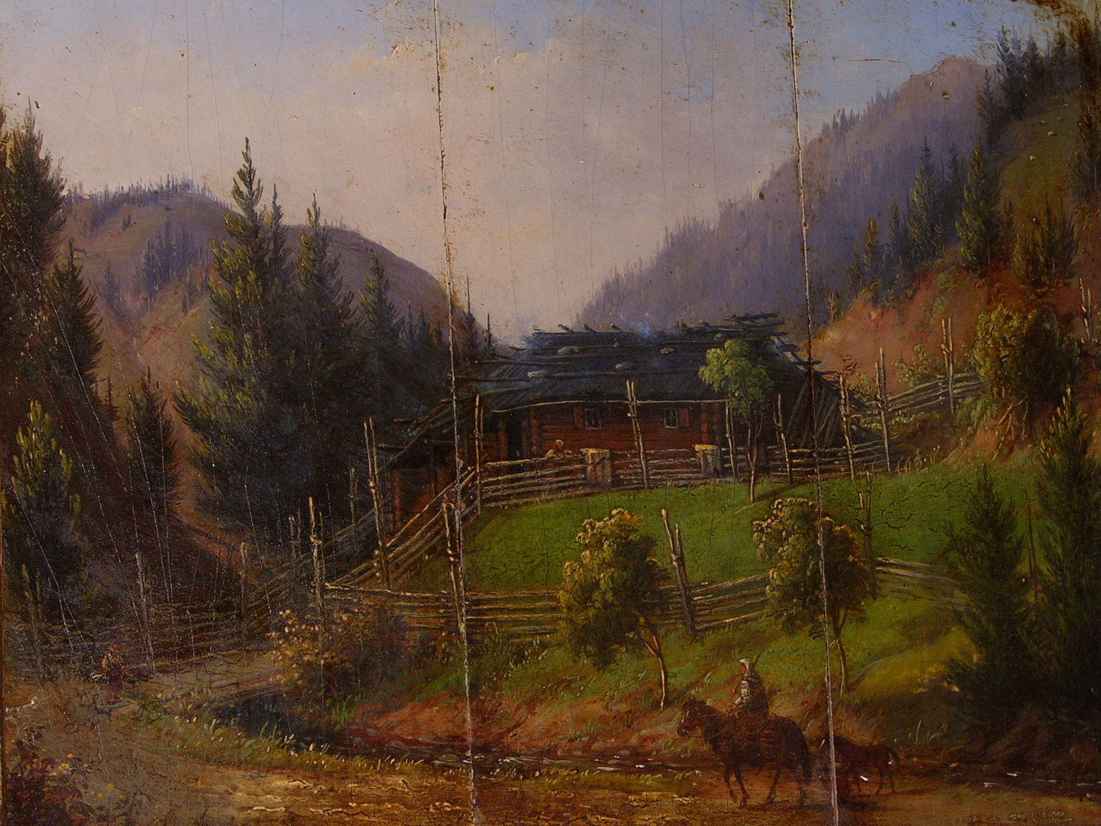 作品名:Peisaj de munte製作者:Sc.germana 3まいの木に描かれたこの作品は、 右下に小さく描かれた馬と人に 芸術性の高さが窺えます。 |